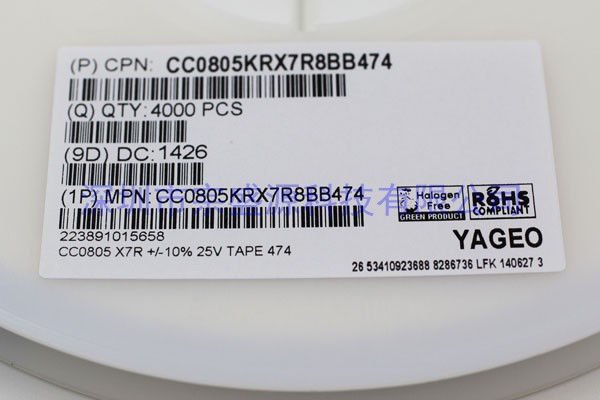 國巨陶瓷電容 0805 25V 0.47UF CC0805KRX7R8BB474