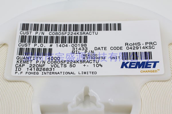 產品名稱:KEMET鉭電容 0805 50V 0.22UF C0805F224K5RACTU