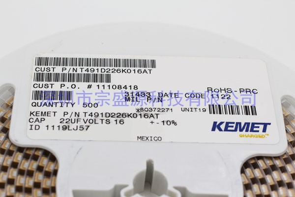 產品名稱:KEMET鉭電容 7343 16V 22UF T491D226K016AT