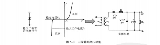 這是由二極管(穩壓二極管)構成的穩壓電路。在該電路中,二極管VD1起整流的作用,二極管VD2起穩壓的作用。