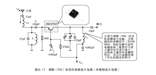 調頻(FM)收音機高頻放大電路(共基極放大電路)見圖8-17。