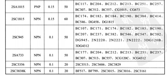 在選用晶體三極管時,在能滿足整機要求放大參數的前提下,不要選用直流放大系數hfe過大的晶體三極管,以防產生自激;應根據應用電路選用相應類型的晶體三極管,注意區分NPN型還是PNP型;根據使用場合和電路性能,選用合適類型的晶體三極管,如用于高、中頻放大和振蕩用的晶體三極管,多選用特征頻率較高和極間電容較小的高頻管;應用于前置放大電路的三極管,多選用放大倍數B較大的晶體三極管;集電極最大允許電流Icm應大于2-3倍的昌體三極管的工作電流;集電極與發射極反向擊穿電壓(BVCEO)應至少大于等于電源電壓;集電極最大允許耗散功率(Pcm)應至少大于等于電路的輸出功率(Po)。對于甲類功率放大電路:Pcm≥3po;甲乙類功率放大電路:Pcm≥(1/3-1/5)Po;晶體三極管的放大倍數B,一般為40-100;選用晶體三極管的特征頻率ft應滿足ft≥3f(工作頻率);如中波收音機振蕩器的最高頻率為2MHZ左右,選用三極管的特征頻率應不低于6MHZ;調頻收音機的最高振蕩頻率為120MHZ左右,則選用晶體管三極管的特征頻率不應低于360MHZ;電視機中VHF頻段的最高振蕩頻率為250MHZ左右,則選用晶體三極管的特征頻率不應低于750MHZ。若所選用三極管為光敏晶體三極管除應注意其電參數,如最高工作電壓、最大集電極電流和最大允許功耗不超過最大值外,其光譜響應范圍必須與入射光的光譜類型相匹配,以獲得最佳的相應特性。