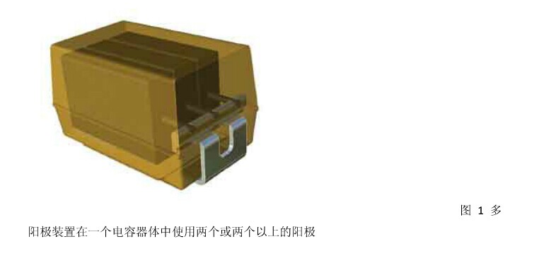 (2)相較于單一的陽(yáng)極,多陽(yáng)極電容的單位容積效率較低,這導(dǎo)致了一種假設(shè),認(rèn)為多陽(yáng)極不能達(dá)到與單一陽(yáng)極一樣的CV(定電壓因素)。事實(shí)上,薄的陽(yáng)極實(shí)現(xiàn)起來更容易,并且更易被第二個(gè)二氧化錳電極系統(tǒng)穿透,使更高的CV得以利用,因此,多陽(yáng)極電容器能達(dá)到同樣甚至更高的CV水平。